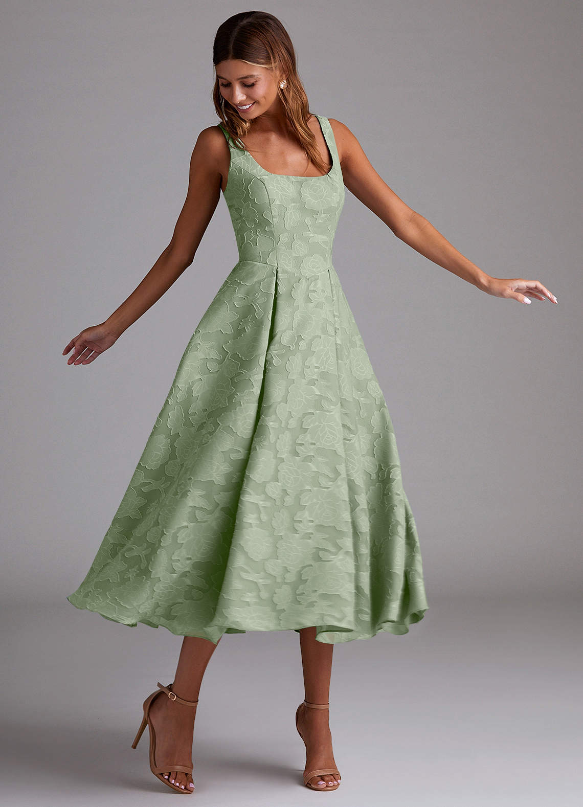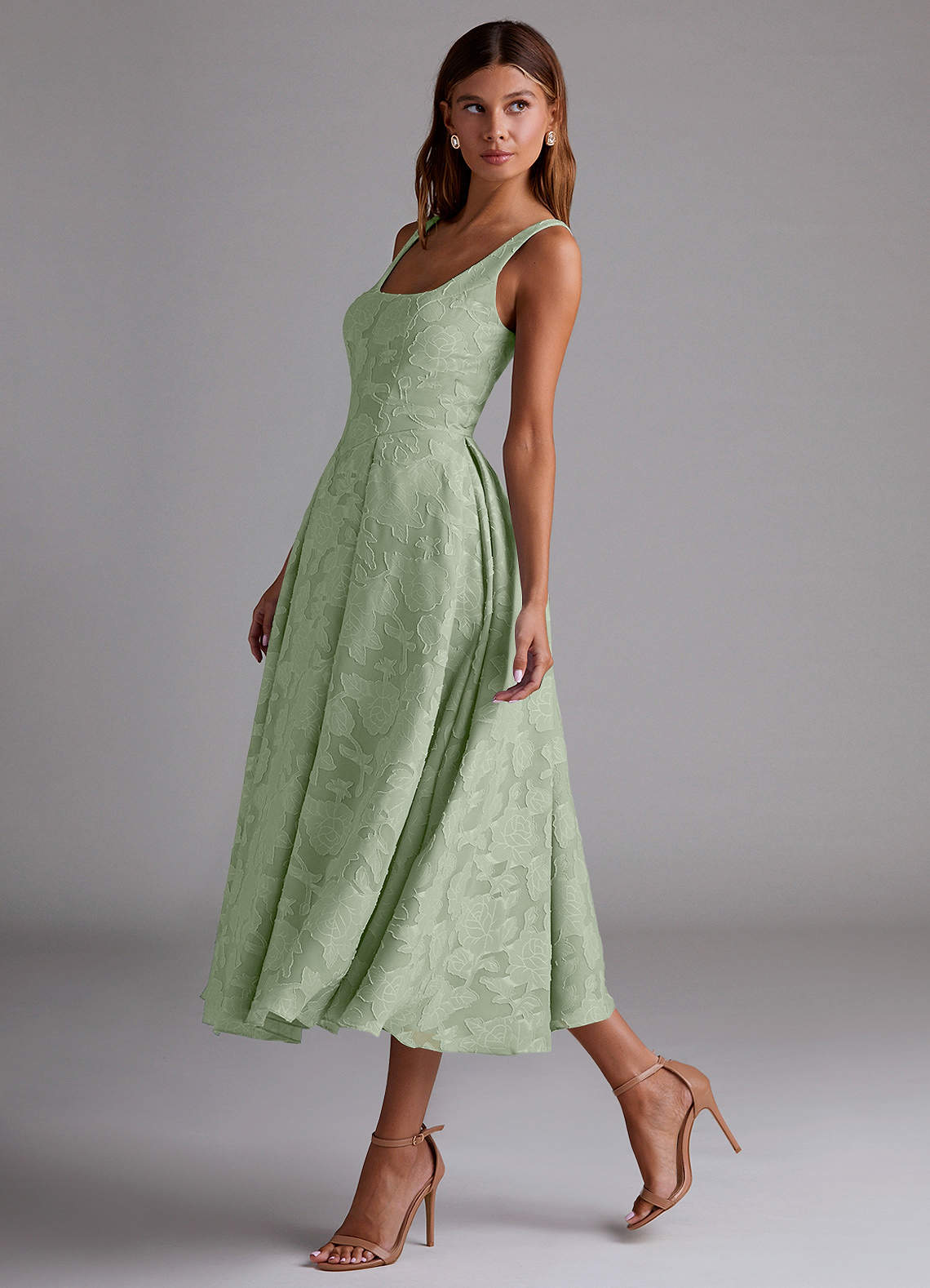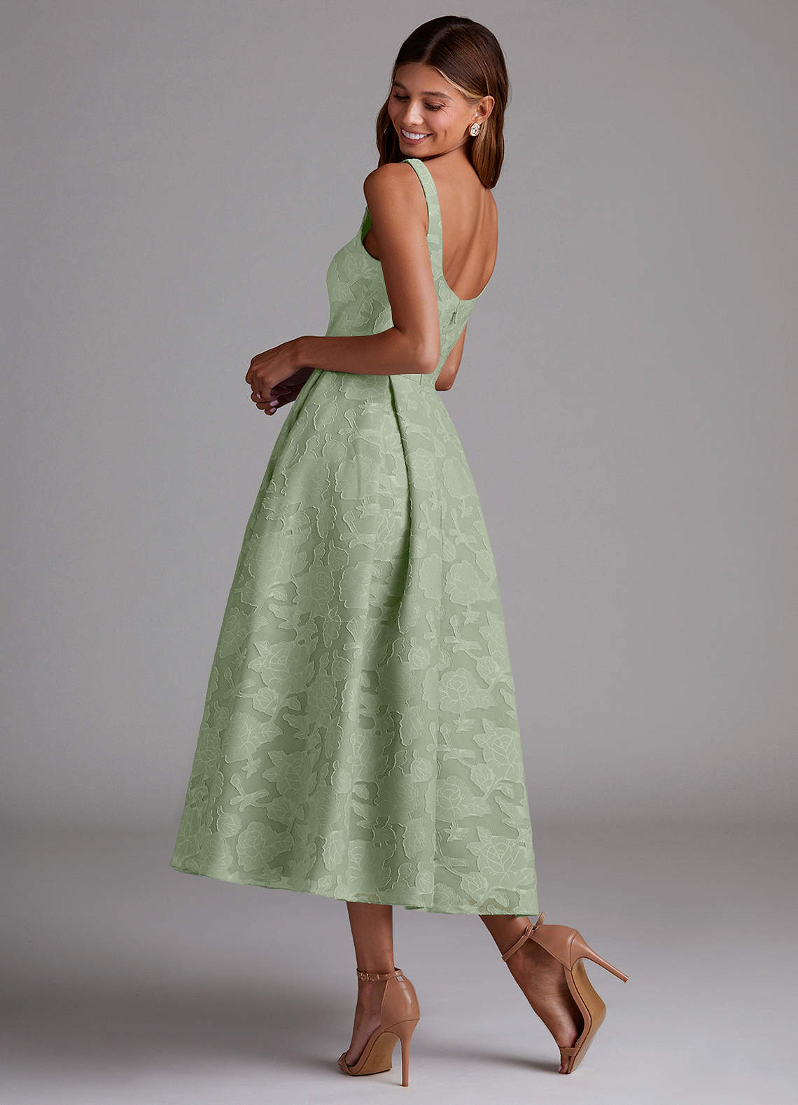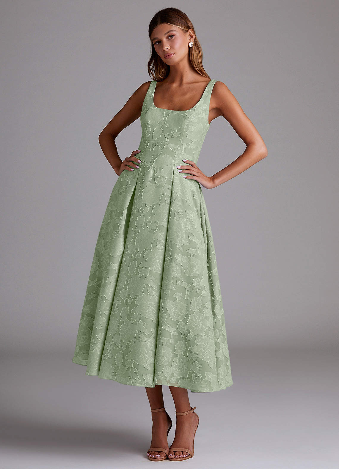 Notre robe de demoiselle d'honneur Amalia est confectionnée dans notre tissu fleuri dévoré dans notre coupe trapèze classique. Elle présente une élégante encolure dégagée associée à une taille pointue. La jupe plissée trapèze est longue comme un thé, avec des poches cachées.