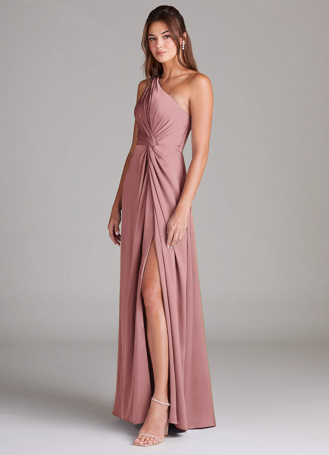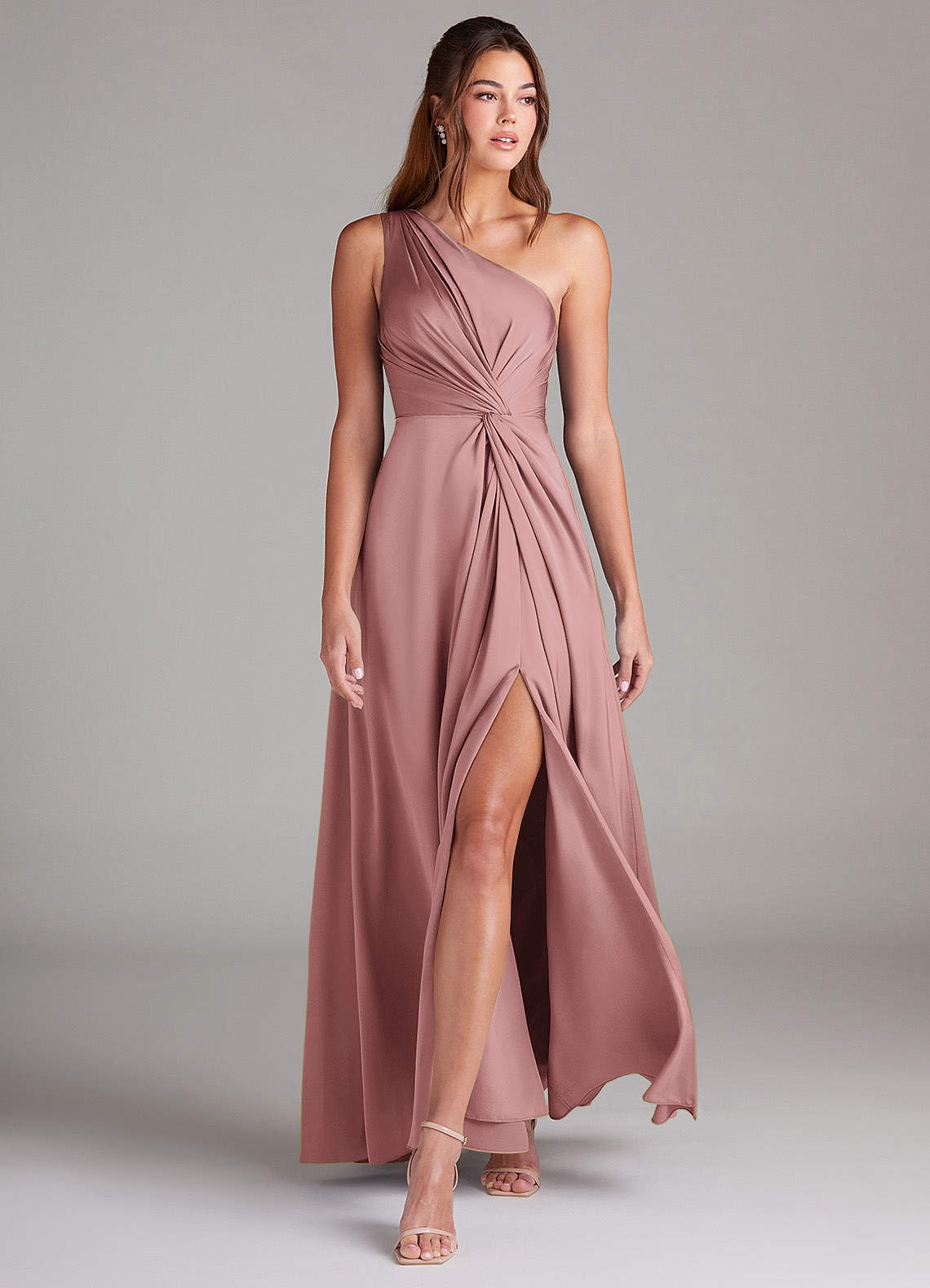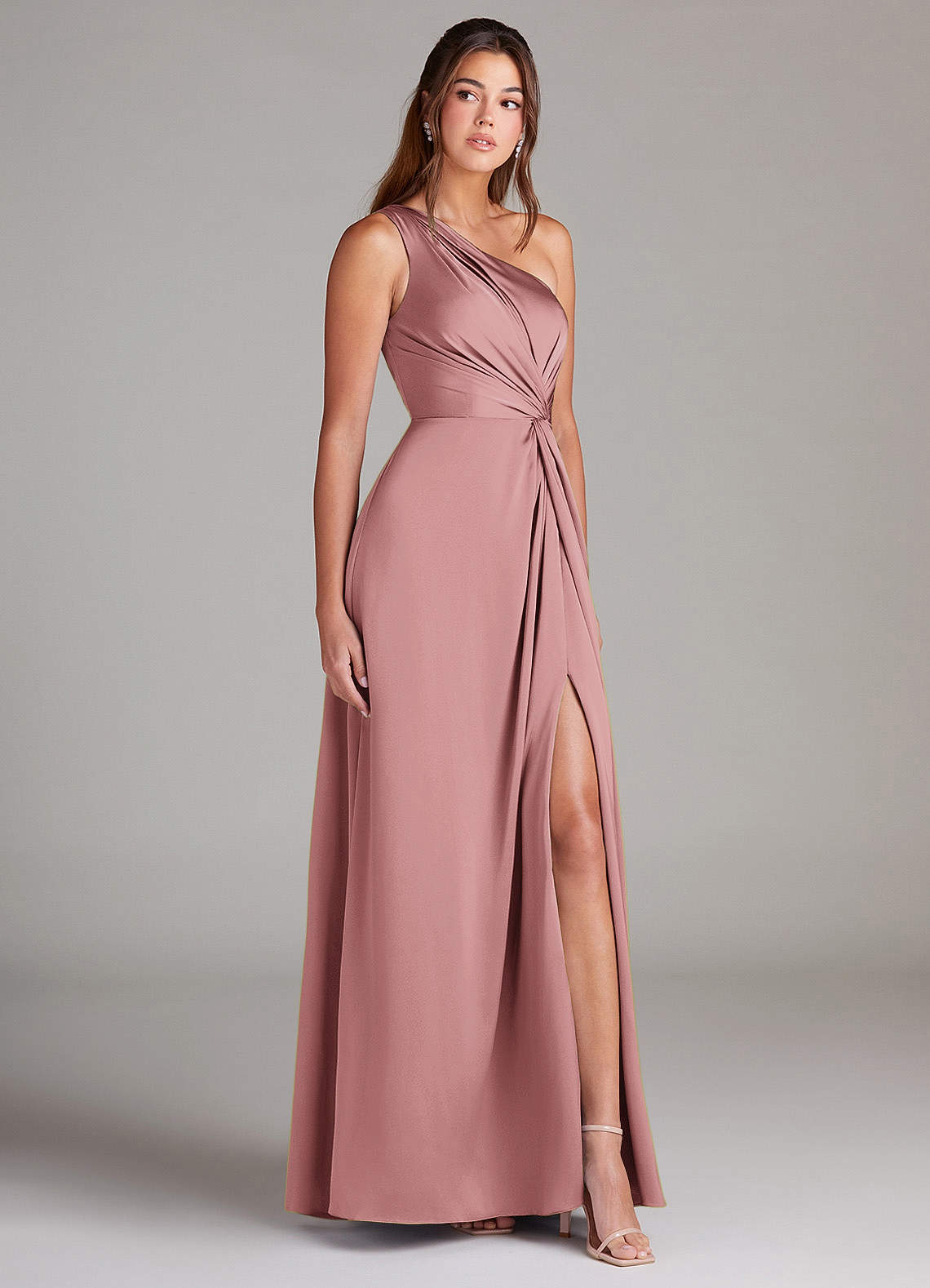 Ressemblez à une déesse grecque des temps modernes en portant Brooke. Cette robe à une épaule est faite d'un satin extensible flatteur, donnant à vos demoiselles d'honneur un look d'élégance moderne. Son corsage plissé et son nœud latéral à la taille accentuent la taille, et une fente latérale sur la jambe ajoute une touche séduisante à sa jupe trapèze classique.