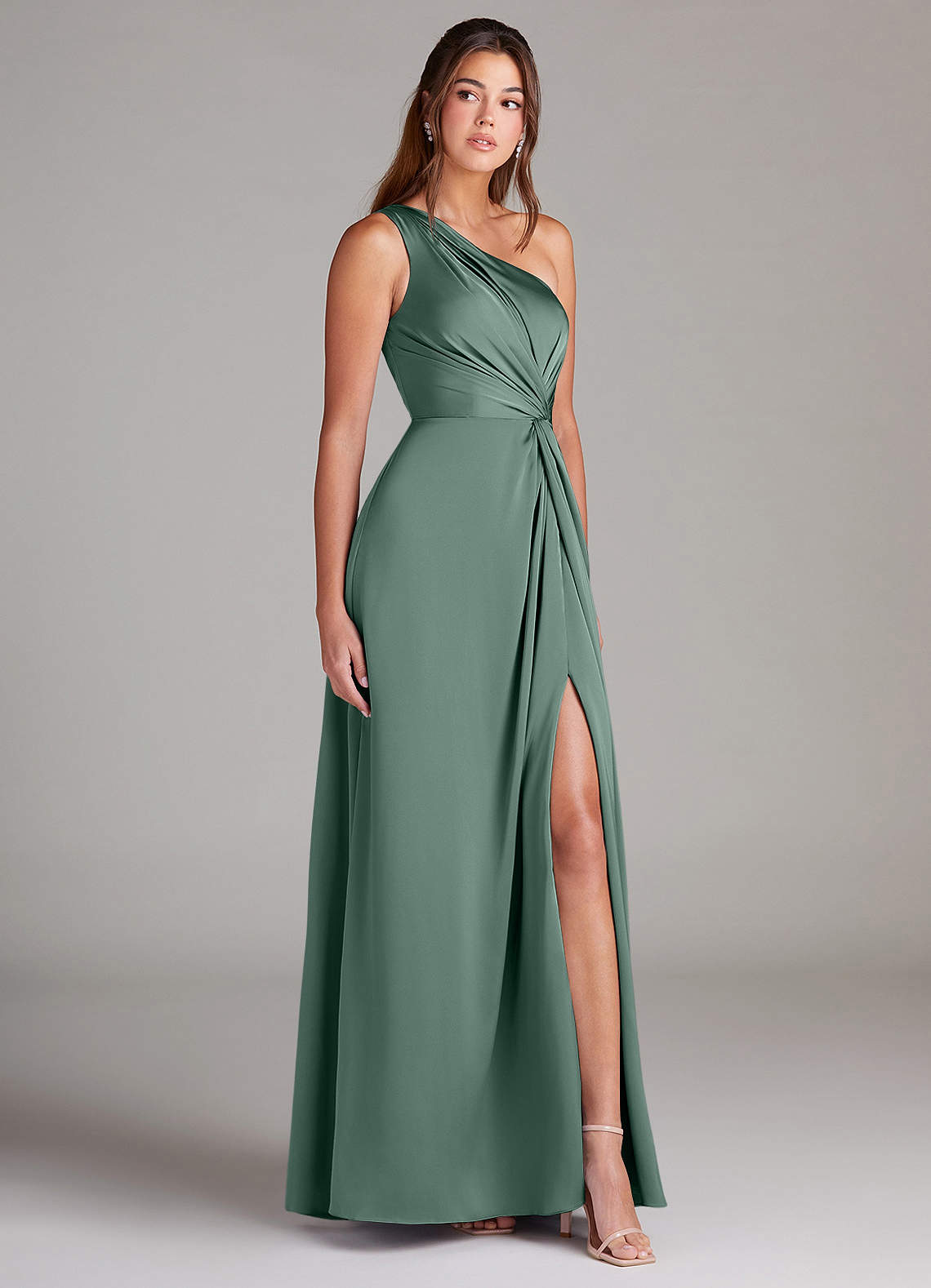 Ressemblez à une déesse grecque des temps modernes en portant Brooke. Cette robe à une épaule est faite d'un satin extensible flatteur, donnant à vos demoiselles d'honneur un look d'élégance moderne. Son corsage plissé et son nœud latéral à la taille accentuent la taille, et une fente latérale sur la jambe ajoute une touche séduisante à sa jupe trapèze classique.