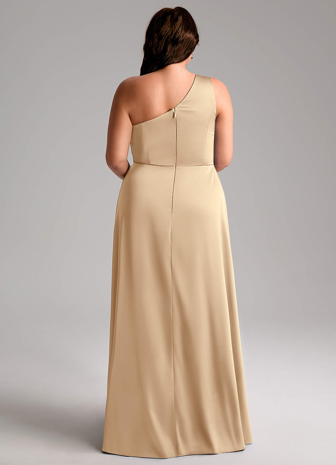 Ressemblez à une déesse grecque des temps modernes en portant Brooke. Cette robe de demoiselle d'honneur à une épaule est faite d'un satin extensible flatteur, donnant à vos demoiselles d'honneur un look d'élégance moderne. Son corsage plissé et son nœud latéral à la taille accentuent la taille, et une fente latérale sur la jambe ajoute une touche séduisante à sa jupe trapèze classique.