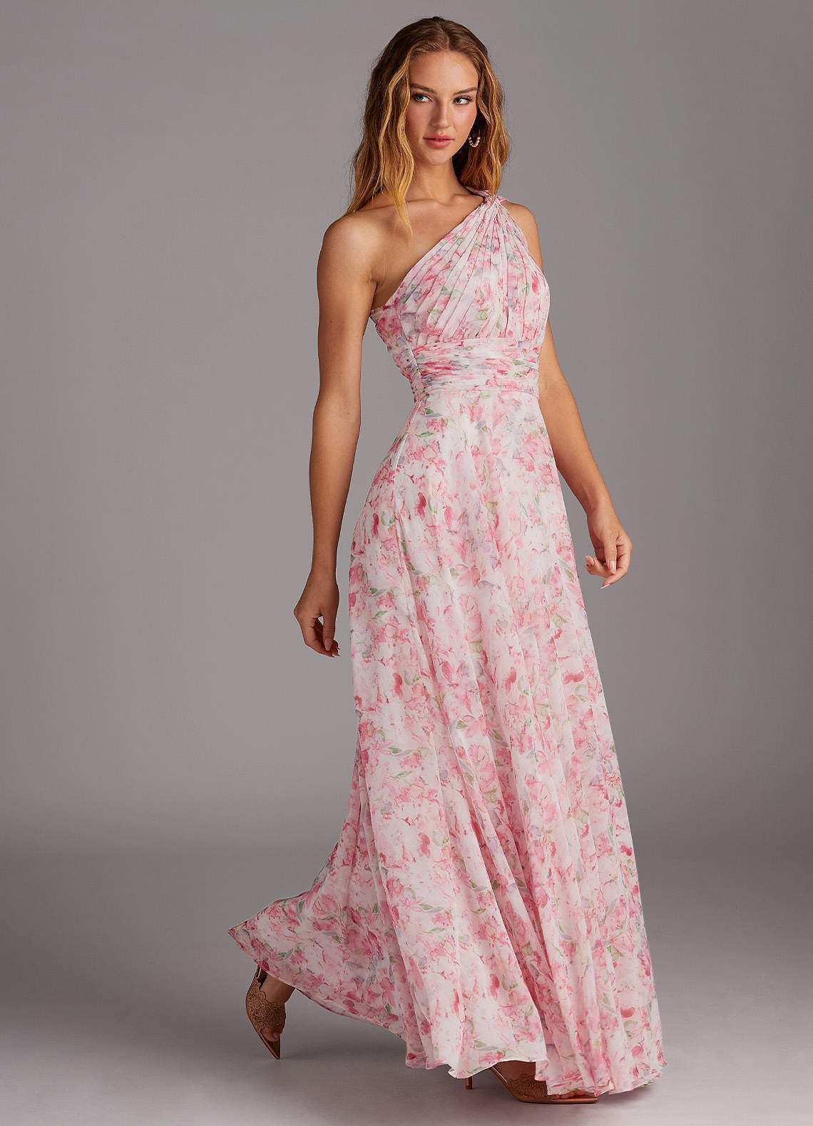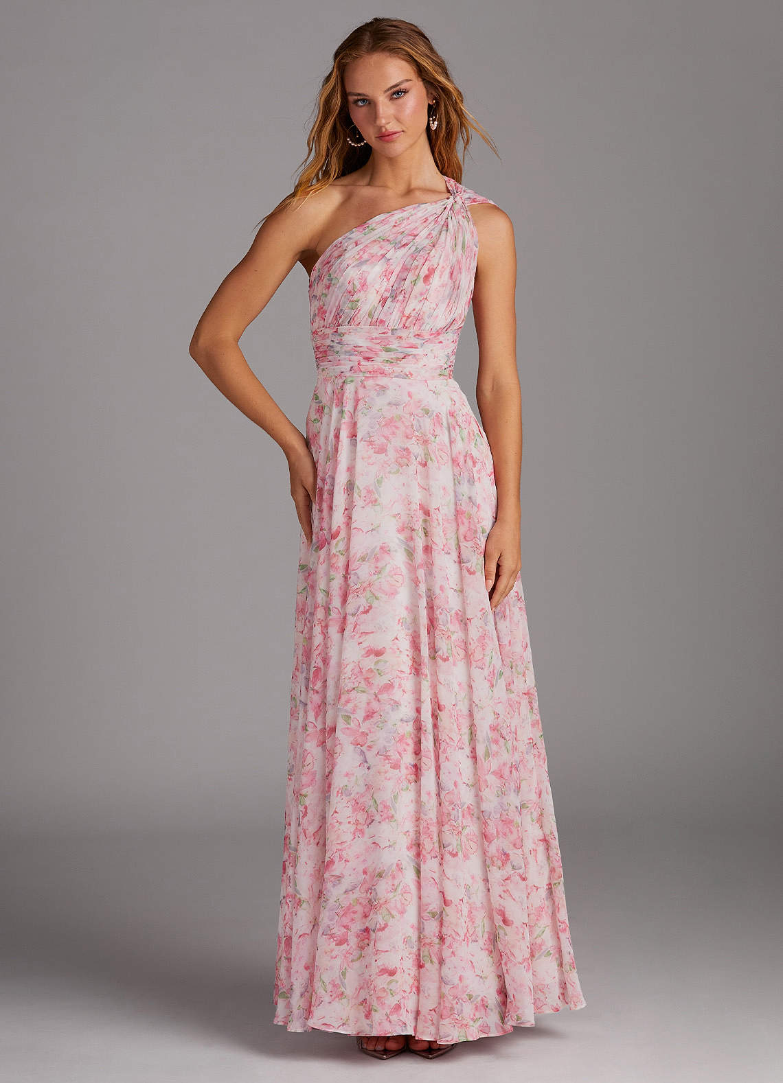 Charlize vous fera sentir comme une déesse grecque moderne ! La robe de demoiselle d'honneur asymétrique présente des panneaux délicatement plissés et un détail d'épaule à nœud torsadé. Le corsage structuré est magnifiquement équilibré avec une jupe trapèze légèrement froncée pour flatter toutes les formes.