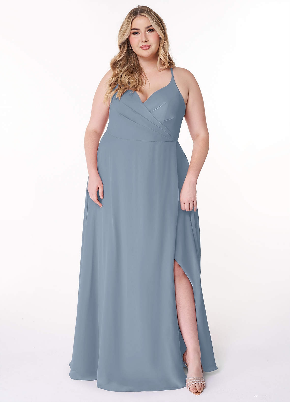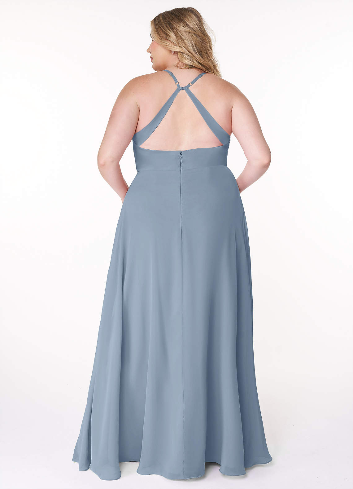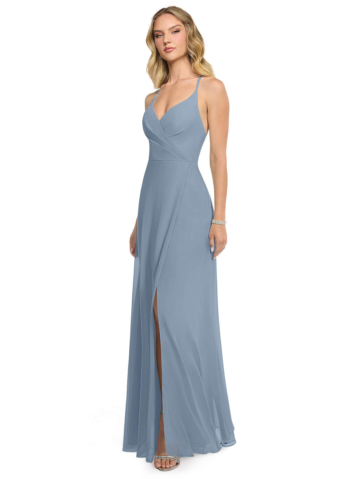 Soyez classique et élégante en portant la robe Davis. Confectionnée en mousseline de soie, elle présente un corsage à encolure en V avec des plis. Sa jupe à la silhouette trapèze est superposée et crée une fente pour les jambes lors de la marche. Ses délicates bretelles spaghetti mènent à un dos ouvert séduisant avec un trou de serrure et une fermeture à bouton recouverte.