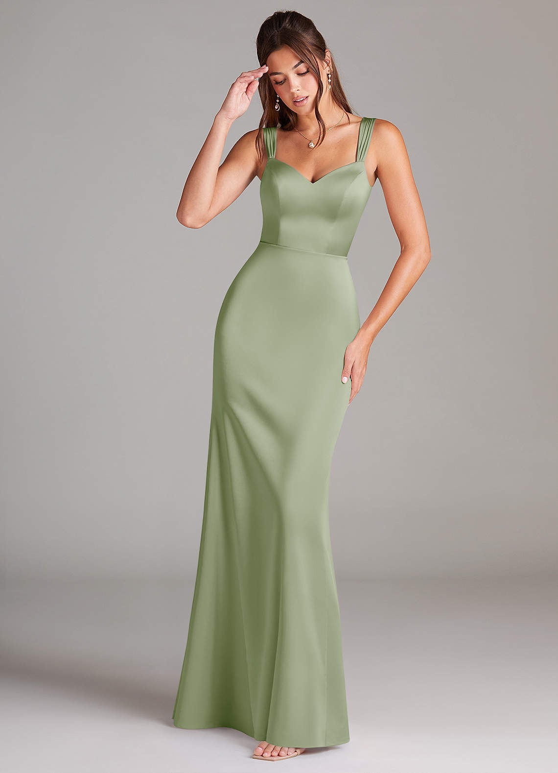 La robe de demoiselle d'honneur Denice allie sans effort élégance et confort avec sa silhouette fourreau élégante et longue confectionnée en satin extensible luxueux. Dotée d'un design sans manches flatteur et d'un décolleté en V chic, cette robe promet un look intemporel et sophistiqué pour votre grand jour.