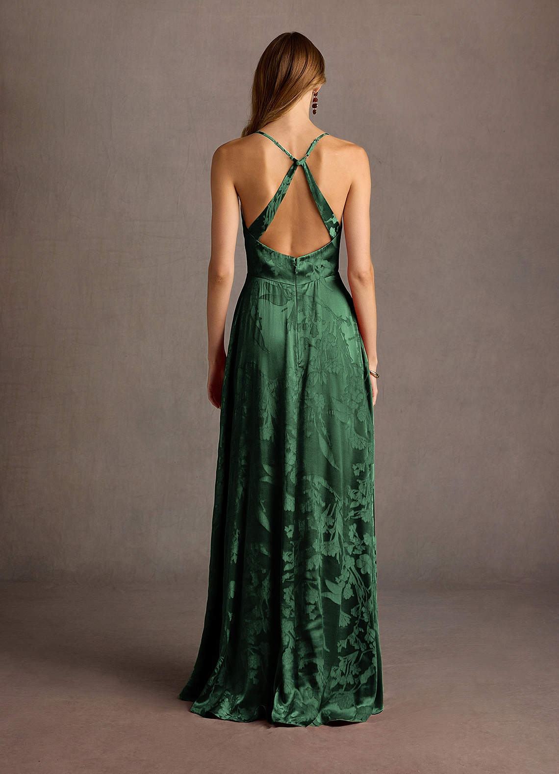 Notre robe longue Gabrielle Open Back est confectionnée dans un magnifique tissu jacquard. Elle présente un décolleté en V associé à des bretelles spaghetti réglables pour un ajustement personnalisé. Portez ce style lors de votre prochain déjeuner formel, soirée chic ou réception de mariage.