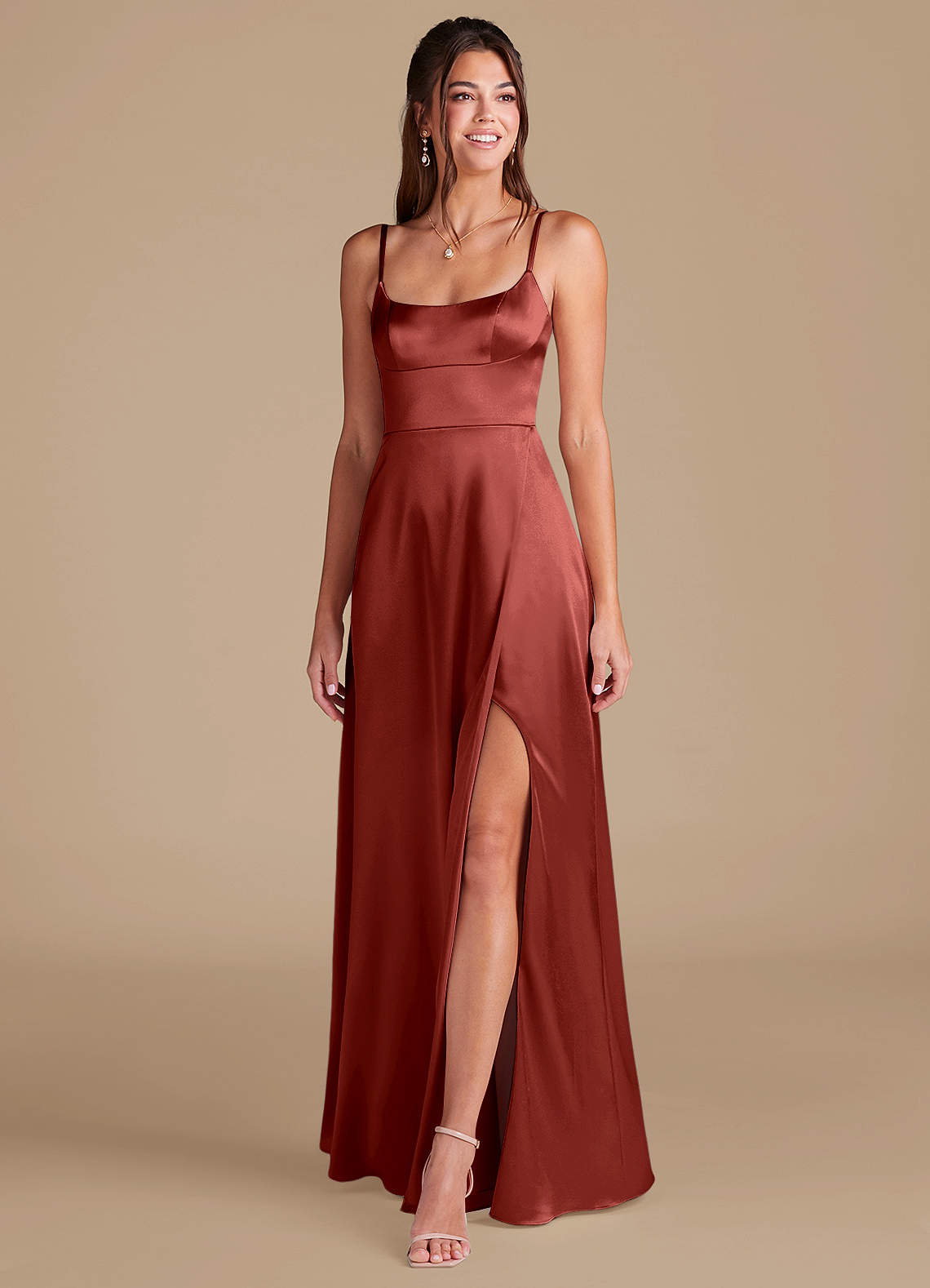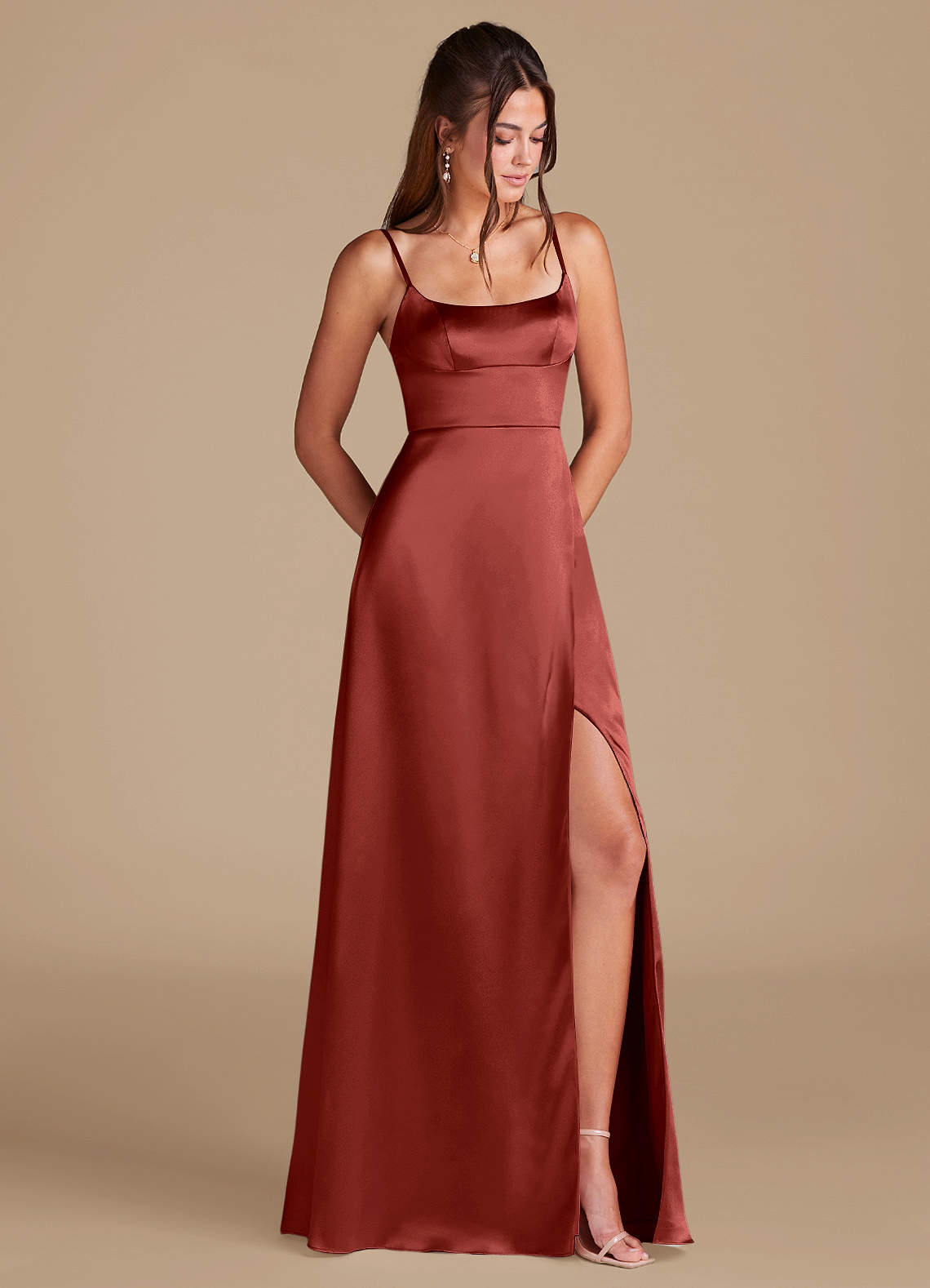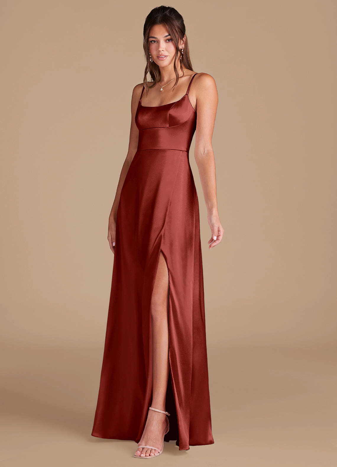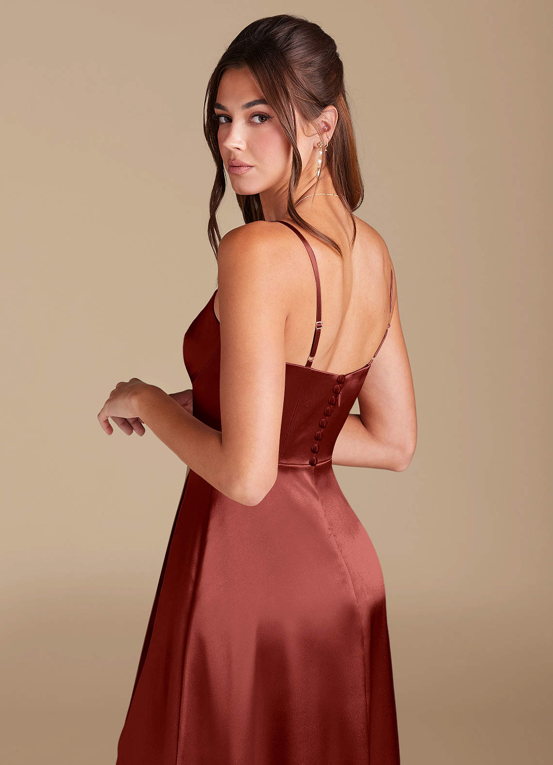 Halsey est parfaite pour toutes les demoiselles d'honneur à la recherche d'une robe fourreau en satin métallisé. Son décolleté plongeant met en valeur chaque décolleté avec sa taille empire. La jupe se porte magnifiquement avec une fente sur le devant de la jambe. Les boutons dans le dos ajoutent une touche de féminité.