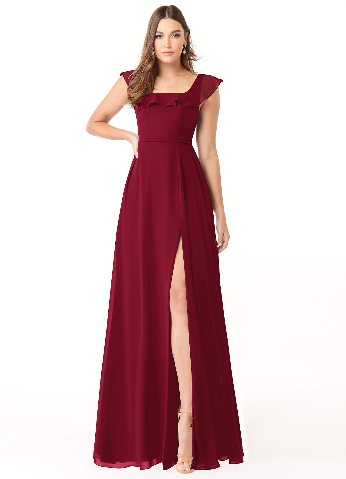 Laissez votre fête de mariage s'amuser en portant notre robe en mousseline de soie, Jinny. Son encolure carrée est rehaussée d'un léger volant. La taille a une ceinture attachée qui repose sur une jupe longueur au sol fendue sur le devant.,Laissez votre fête de mariage s'amuser tout en portant notre robe en mousseline de soie, Jinny. Son encolure carrée est rehaussée d'un léger volant. La taille a une ceinture attachée qui repose sur une jupe longue fendue sur le devant. En prime, nous avons ajouté des poches !