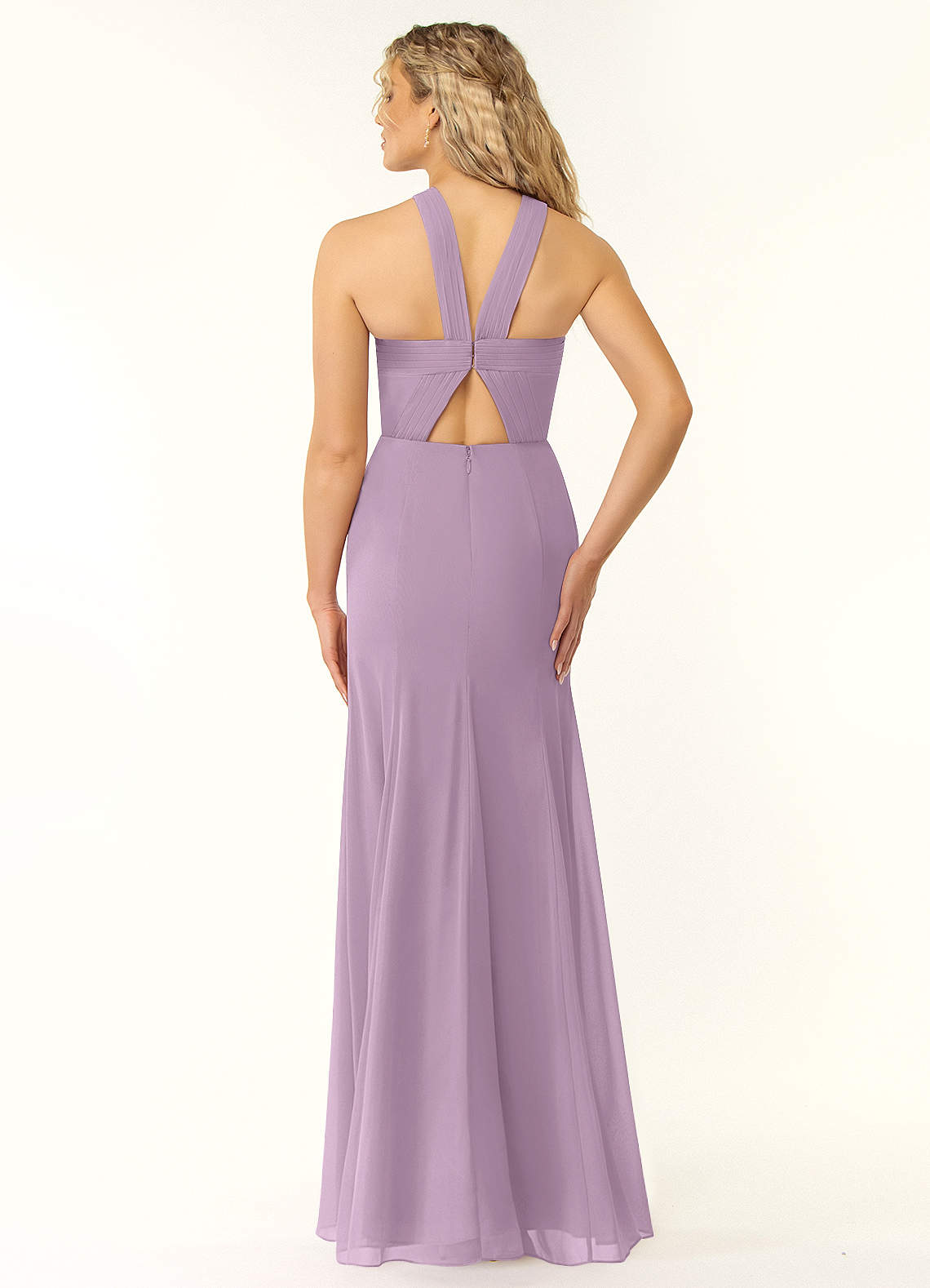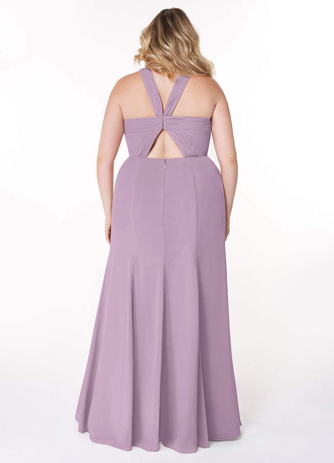 Sentez-vous comme une déesse mythique grecque portant Rue. Doté d'un décolleté licou torsadé, son corsage a un détail plissé qui se connecte aux bretelles. Ses bretelles plissées se rejoignent au centre du corsage avec une fermeture à crochet et œillet, créant une découpe dans le dos. Fabriquée en mousse de soie, sa silhouette se termine avec une fente pour les jambes.