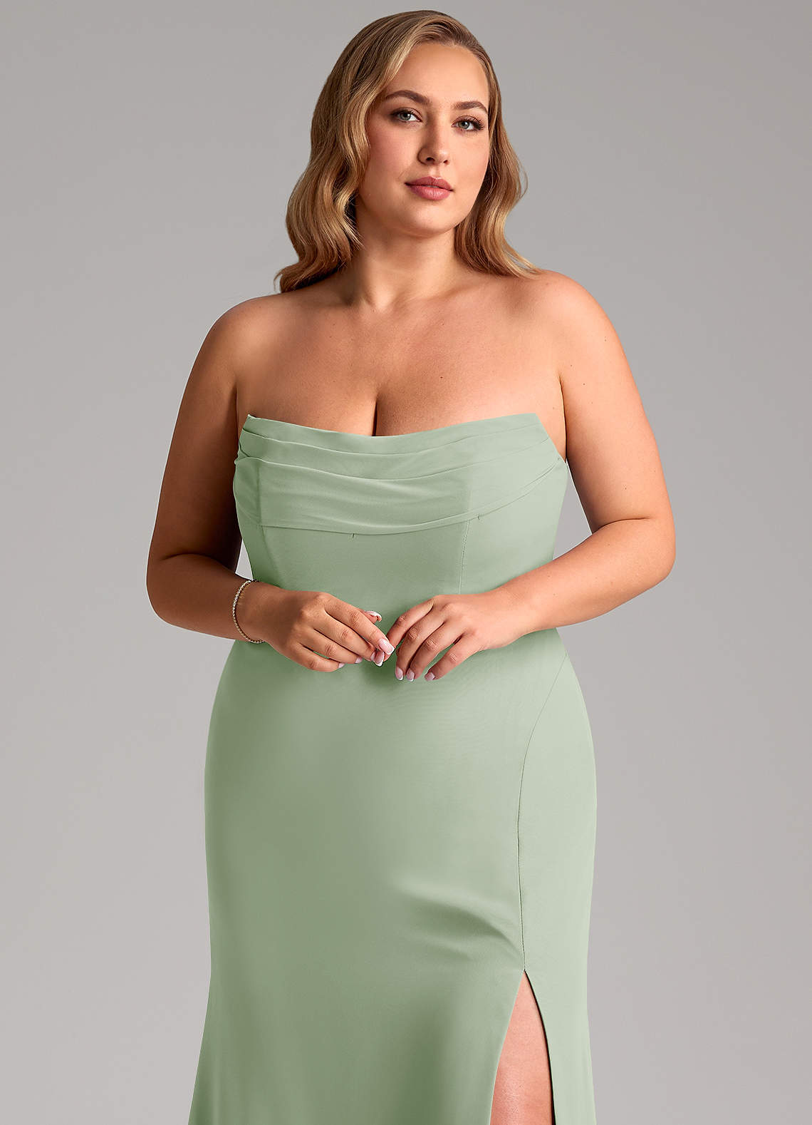 Soyez là pour votre meilleure amie avec Saige, notre robe longue en mousseline de soie. Elle présente un décolleté plissé, une jupe sirène, une superbe fente sur la jambe et des bretelles amovibles plissées.