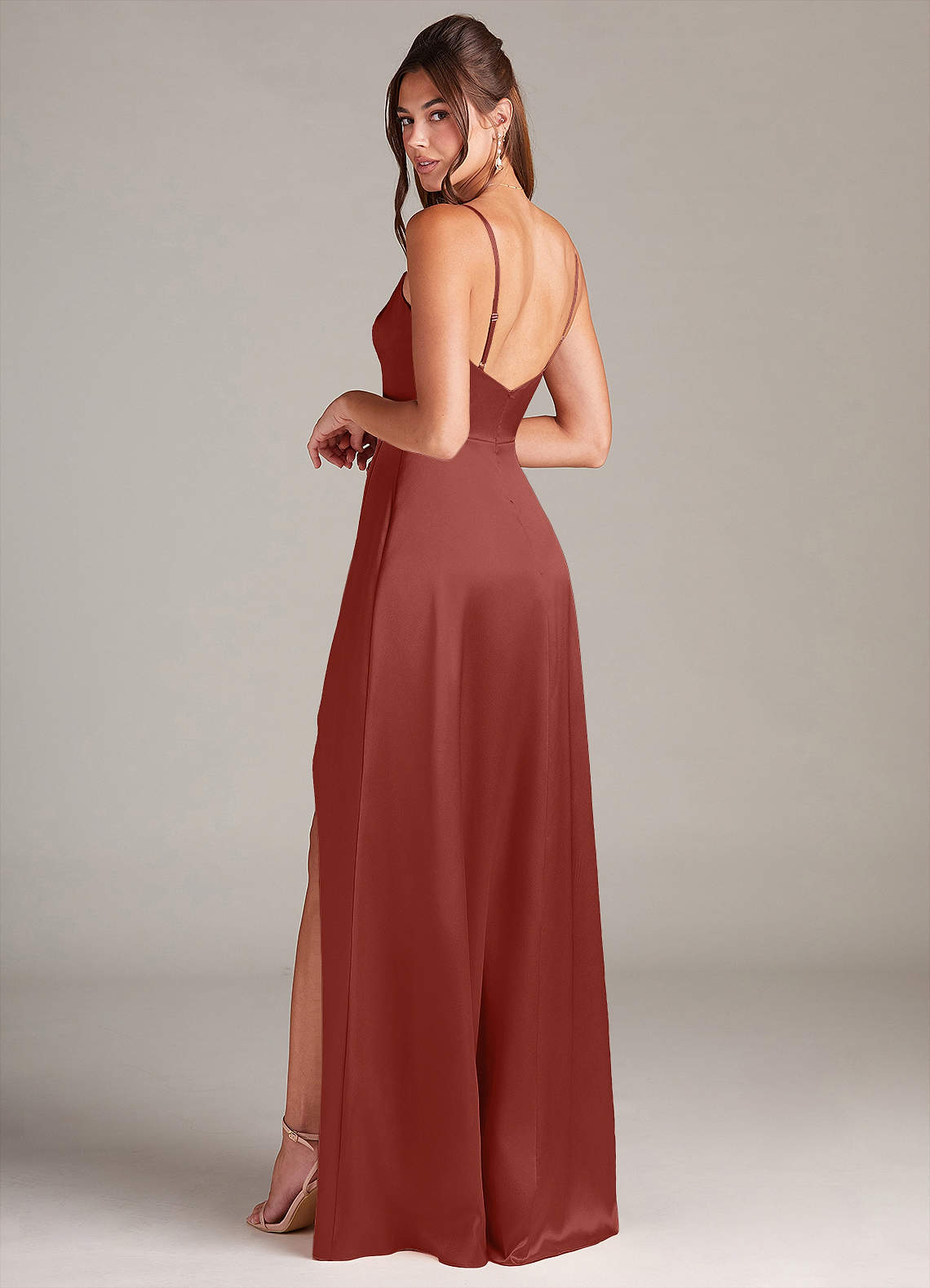 La robe Sarella est notre sublime robe en satin métallisé, associant un décolleté en V à un col bénitier et une jupe trapèze longue avec poches. Sentez-vous belle pour votre grand jour avec la robe Sarella.