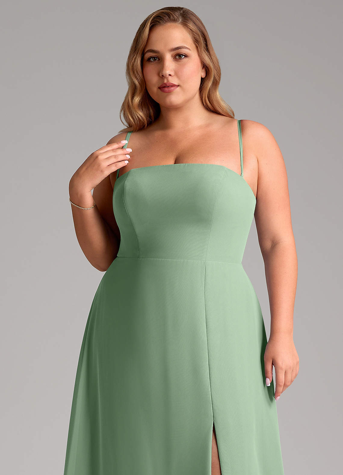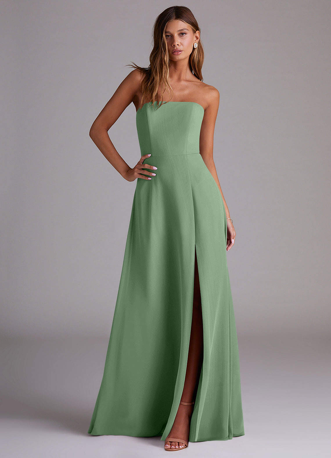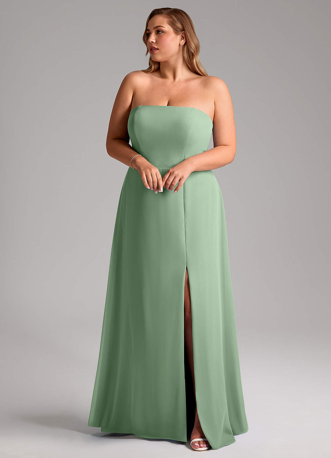 Wren est notre robe de demoiselle d'honneur classique en mousseline. Elle présente un décolleté sans bretelles flatteur et une fente sur la jambe pour mettre en valeur vos jambes.